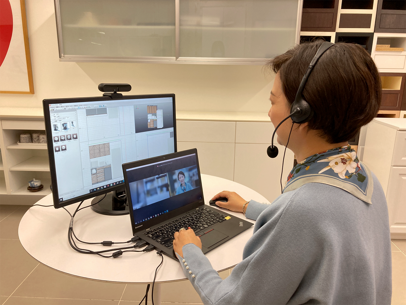 ZOOMやメールなどでご要望をお伺いし、お客様とご一緒にプランニングいたします。ショールームでは、実際に家具で使用する金具や面材等をご覧いただけます。※ショールームは完全予約制です。