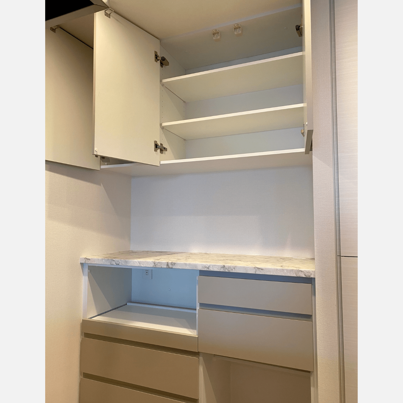 非常に使い勝手も良く、見た目にも素敵なキッチンを演出してくれるカップボードは、遊びに来た友人や家族からも大変好評です。御社にご依頼させていただいて本当に良かったなと思っております。