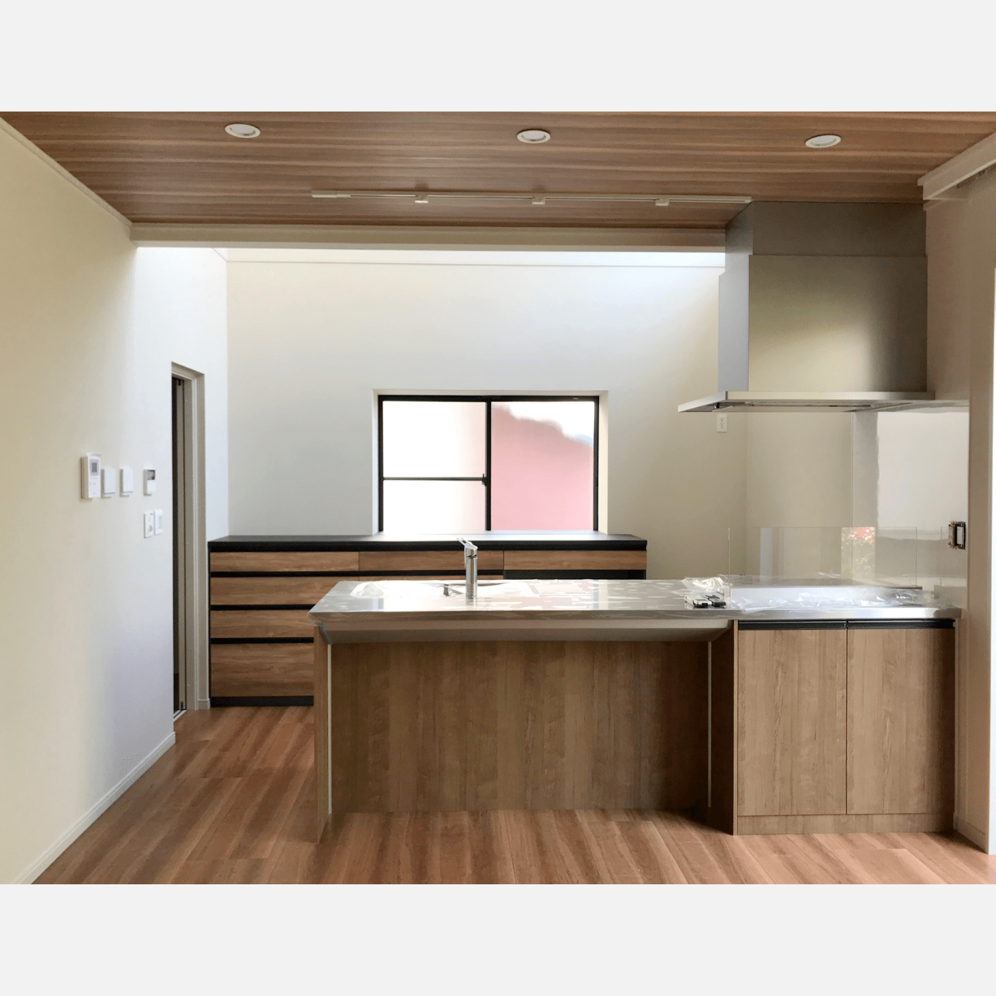設置場所間口が広くハイカウンターのため、下台に引出しを8段も設けることができました。床の色に近い扉面材を採用し、お部屋に馴染んだ仕上がりになりました。