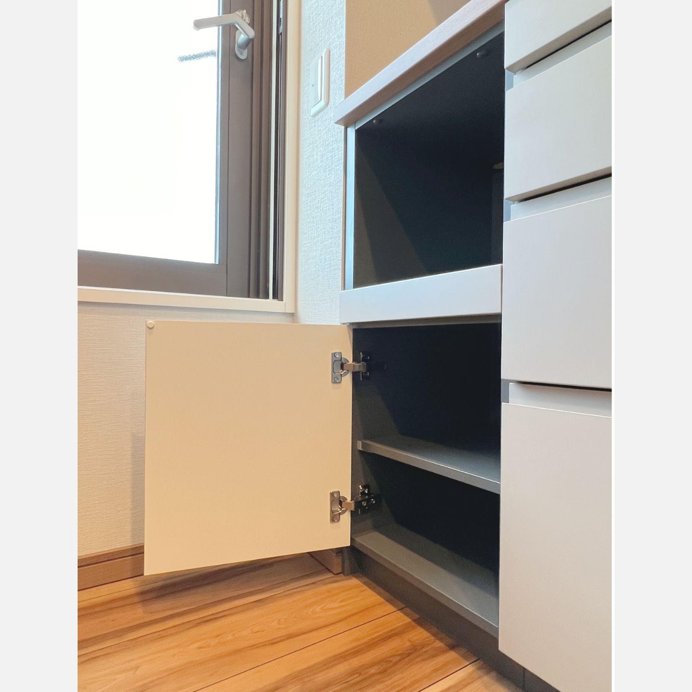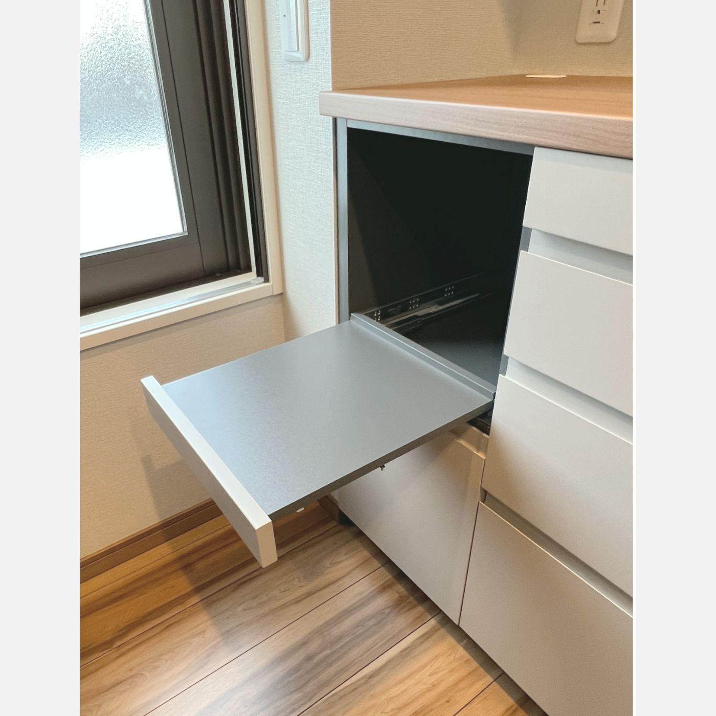 天板の幅と置きたい家電のサイズを考慮し、ちょっとした作業スペースとして使用できる作業台をご提案し、採用いただきました。