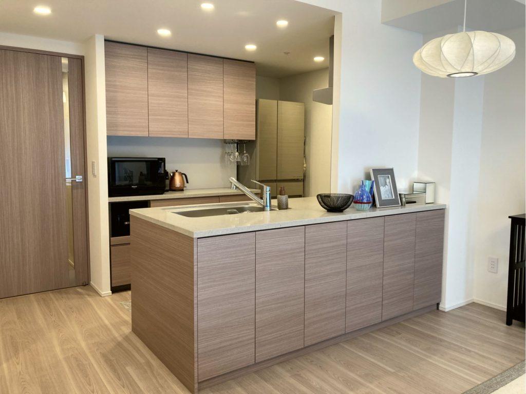 オーダー家具でも、ほとんどの場合、キッチンと同じ面材が使用可能です(一部、メーカー専用品番の場合はお選びいただけません)。