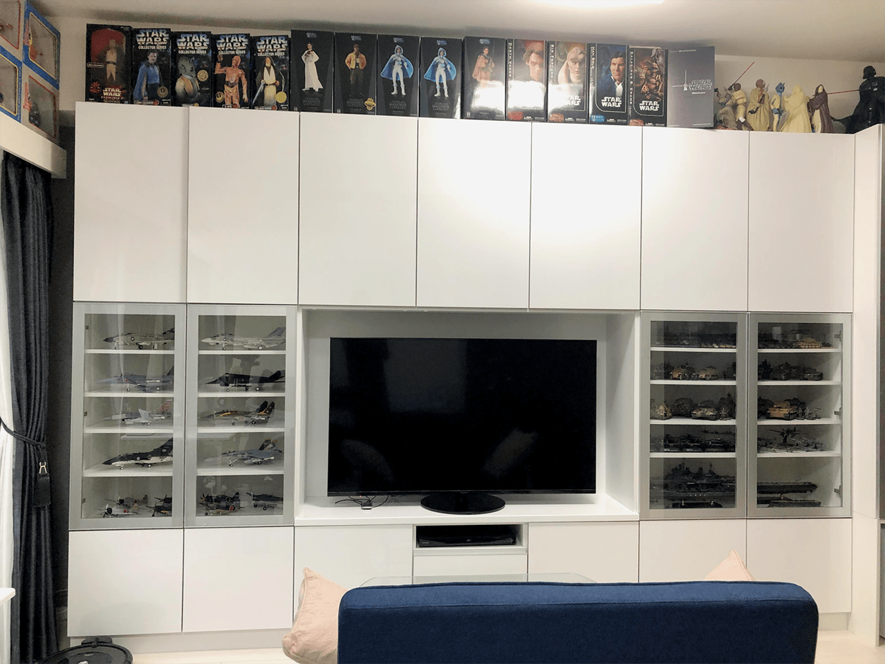 ガラス扉の中にプラモデルが展示された光景はとても圧巻で、お客様のプラモデルに対する強い情熱を感じました。そんなお部屋にファニチャーメーカーの家具をお選びいただき、大変嬉しく思います。
