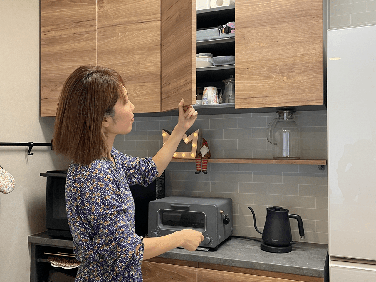 オーダーカップボードを購入する前は、既製品のカップボードを使用していました。既製品は梁や奥行きがフィットしておらず、収納も物足りなかったです。少しずつ不満が溜まっていたことに気づき、毎日使う物だから買い替えたいと思ってオーダー家具を検討し始めました。Instagramで施工事例を探していたのですが、好みのカップボードを見つけた時に「どこの家具だろう?」と探していた時にファニチャーメーカーさんを知りました。